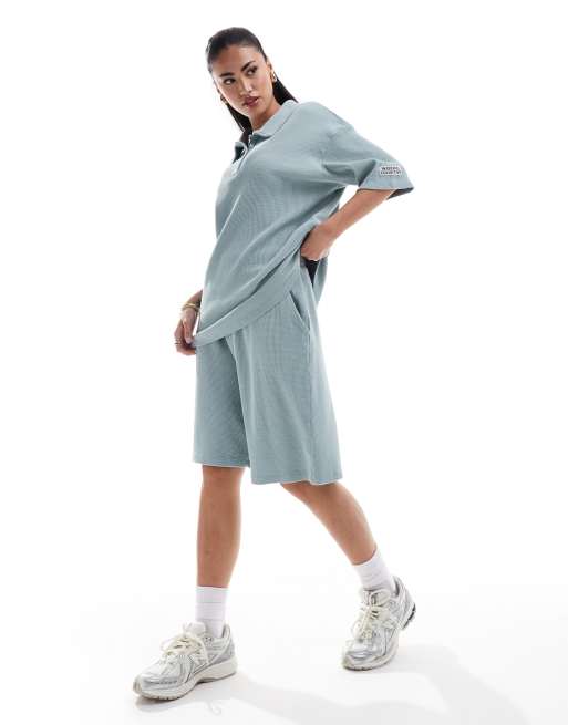 ASOS DESIGN – Weekend Collective – Niebieskie długie szorty o waflowej strukturze, część zestawu
