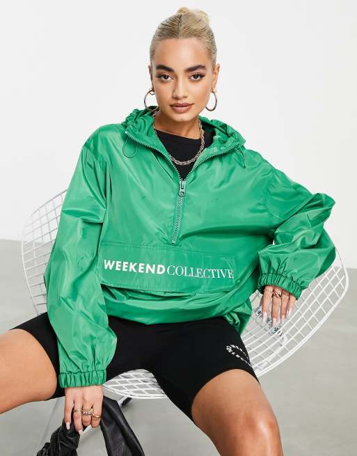 ASOS DESIGN Weekend Collective – Zielona wkładana przez głowę kurtka przeciwdeszczowa