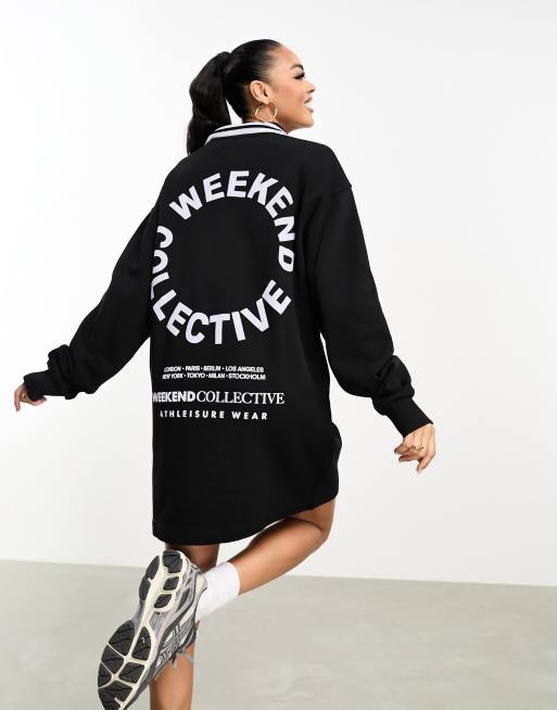 ASOS Weekend Collective – Czarna sukienka z kołnierzem, zamkiem pod szyją i okrągłym logo