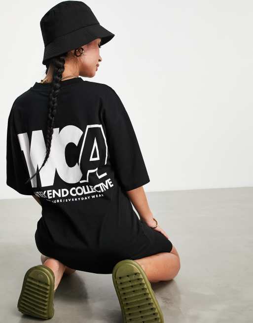 ASOS Weekend Collective – Czarny T-shirt oversize z dużym logo na plecach