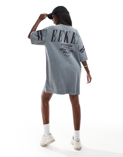 ASOS Weekend Collective – Grafitowa sukienka t-shirtowa z logo i efektem sprania