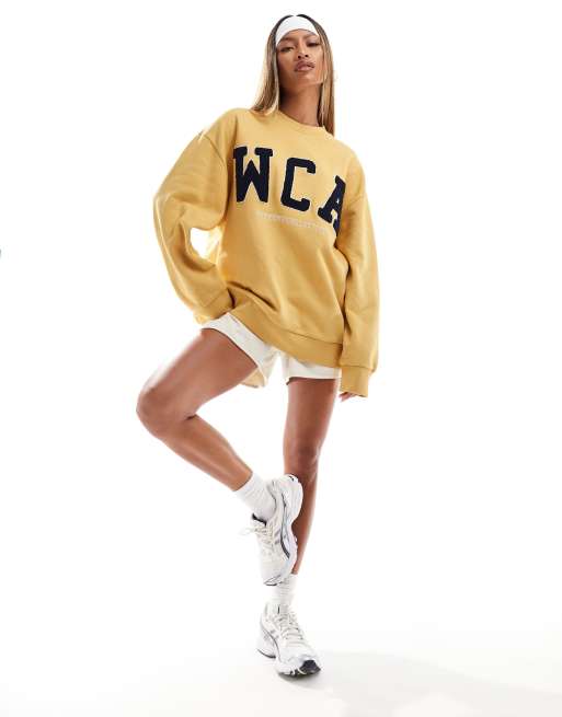 ASOS Weekend Collective – Żółta bluza oversize z uczelnianym nadrukiem