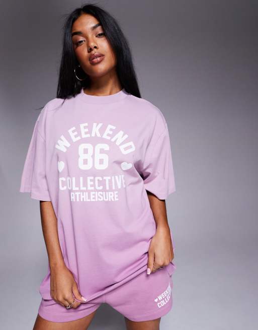 Weekend Collective – Fioletowy T-shirt z efektem ombre i nadrukiem, część zestawu