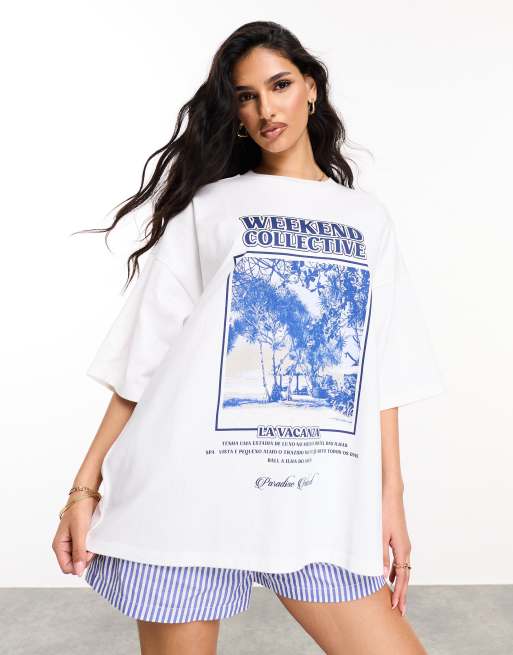 Weekend Collective – T-shirt oversize z grafiką z napisem „La Vacanza”