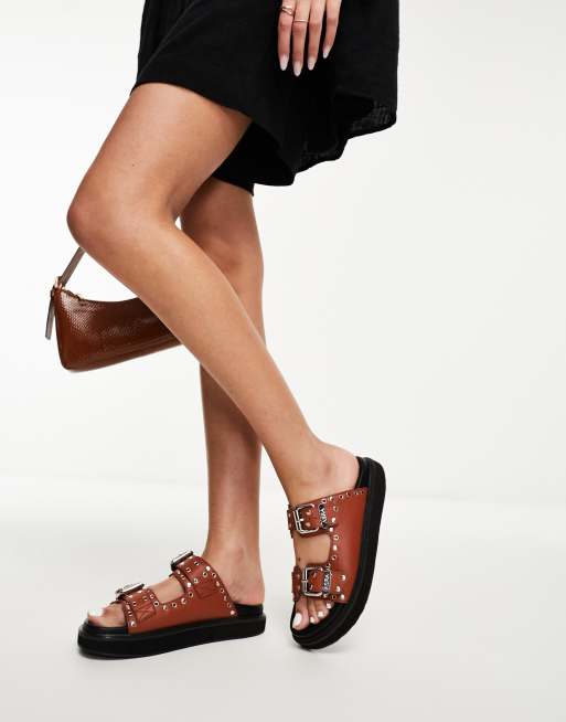 Asra – Siana – Pomarańczowobrązowe sandały skórzane z ćwiekami