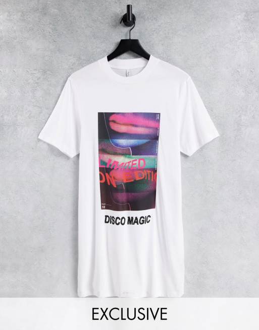 ASYOU – Biała sukienka T-shirtowa z grafiką „Disco Magic”