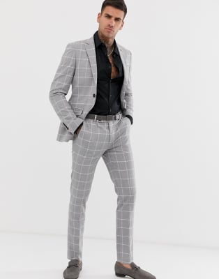 Avail London – Jasnoszary garnitur o obcisłym kroju w kratę