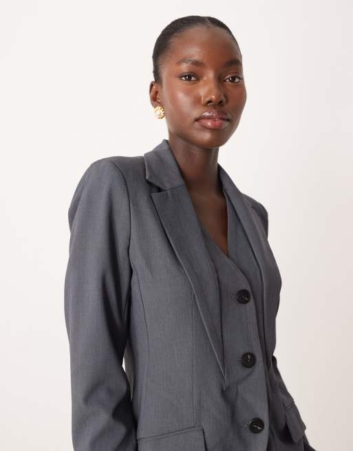 AWARE – premium – Dopasowana marynarka z kamizelką w ciemnoszarym melanżowym kolorze, część zestawu