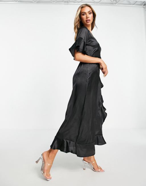 AX Paris – Kopertowa satynowa sukienka w kolorze czarnym