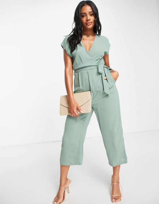 AX Paris – Szałwiowy kombinezon z kopertowym przodem
