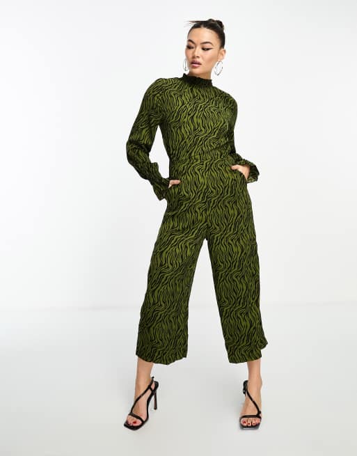 AX Paris – Zielony kombinezon z golfem i kulotami w zwierzęcy wzór