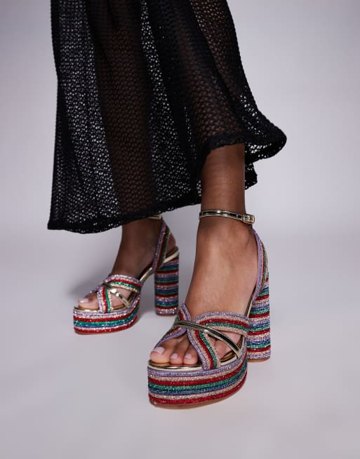 Azalea Wang – Kinslee – Kolorowe zdobione sandały na platformie