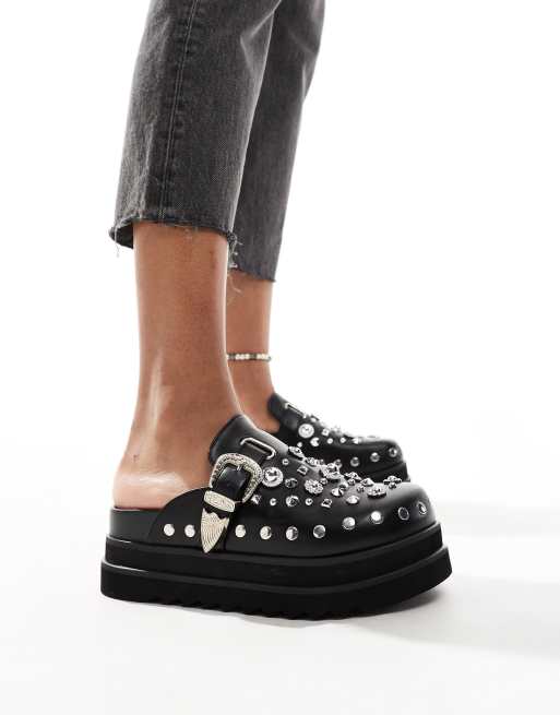 Azalea Wang – Swiftly – Czarne płaskie kowbojki z metalowymi wstawkami