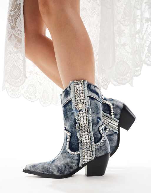 Azalea Wang – Yannic – Jeansowe kowbojki do kostki z efektem sprania