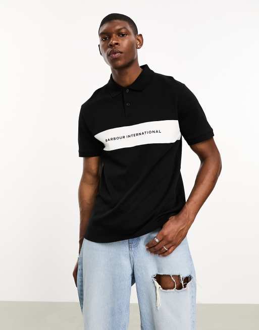 Barbour International – Bar – Czarna koszulka polo z krótkimi rękawami