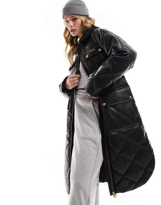 Barbour International – Neutron – Czarna długa kurtka pikowana z kołnierzem