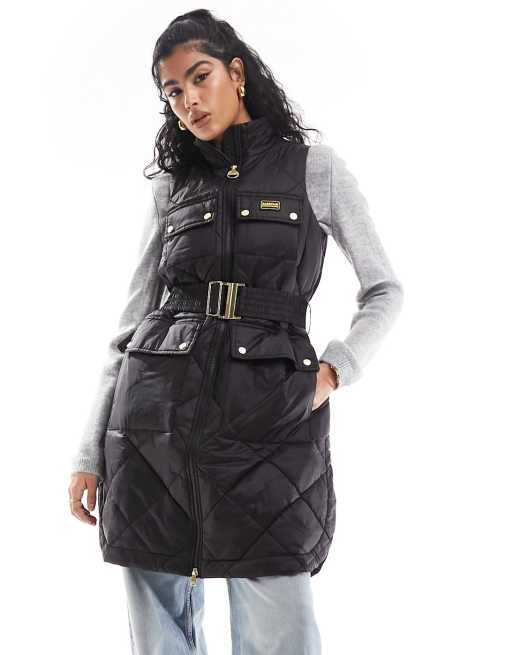Barbour International – Orbit – Długi czarny bezrękawnik z paskiem