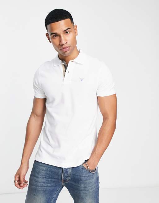 Barbour – Biała koszulka polo z logo i motywem w szkocką kratę