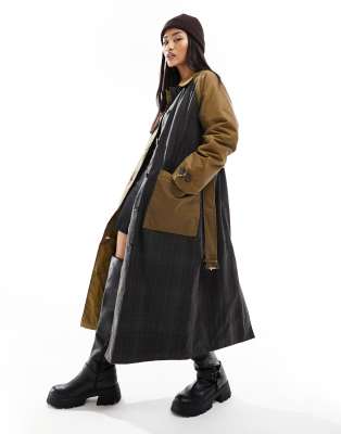 Barbour – Everley – Piaskowy woskowany prochowiec ze wstawkami w kratę