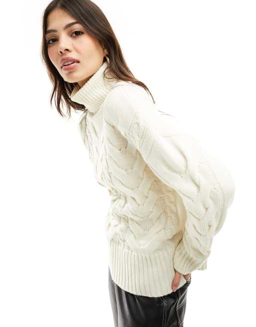 Barbour – Woodlane – Gruby dzianinowy sweter o warkoczowym splocie w kolorze złamanej bieli