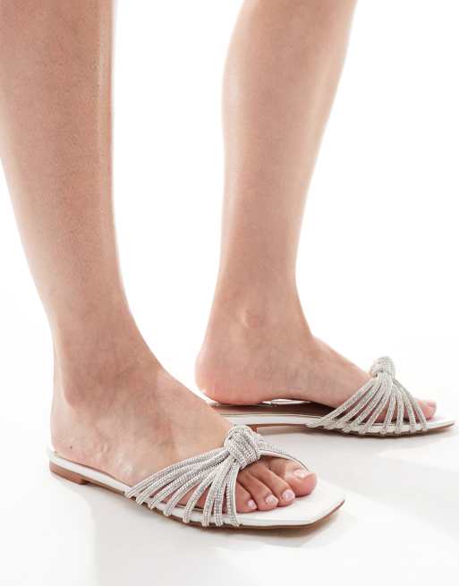 Be Mine Bridal – Vibez – Płaskie zdobione sandały z węzłem w kolorze kości słoniowej