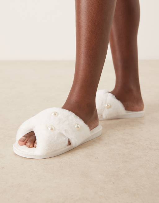Be Mine – Kapcie w kolorze kości słoniowej z perłami