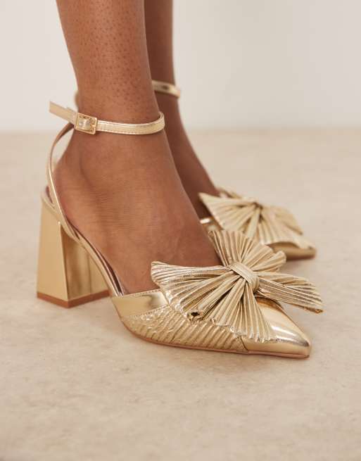 Be Mine – Sierra – Satynowe złote buty na obcasie z kokardkami