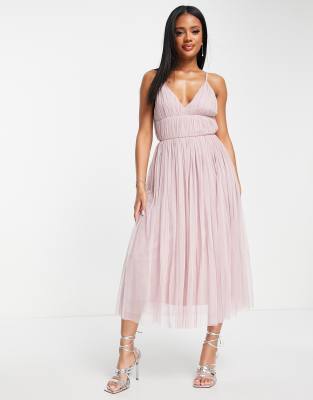 Beauut Bridesmaid – Warstwowa tiulowa sukienka midi w chłodnym różowym kolorze