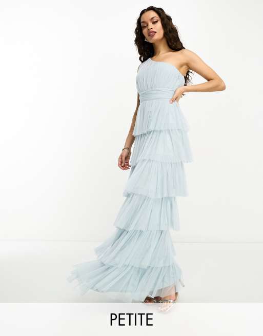 Beauut Petite Bridesmaid – Jasnoniebieska warstwowa sukienka maxi na jedno ramię