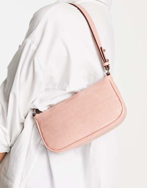 Becksondergaard – Różowa torebka na ramię z efektem krokodylej skóry