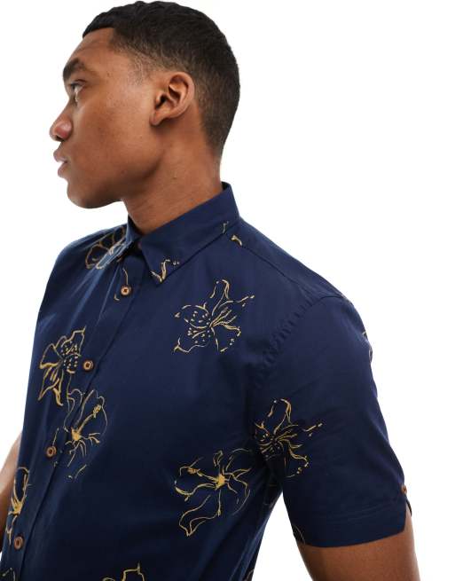 Ben Sherman – Ciemnoniebieska koszula z krótkimi rękawami w kwiatowy wzór