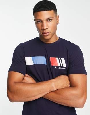 Ben Sherman – Granatowy T-shirt z paskiem w stylu retro