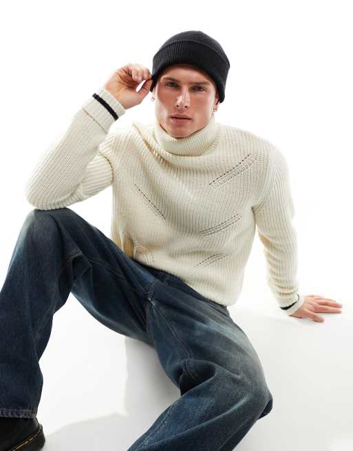 Ben Sherman – Teksturowany sweter z golfem w kolorze złamanej bieli