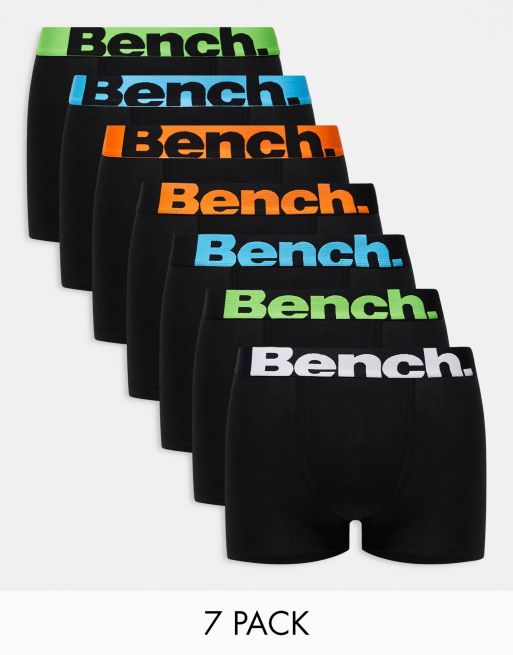 Bench – Diego – Zestaw 7 par czarnych bokserek z kontrastową taśma w talii