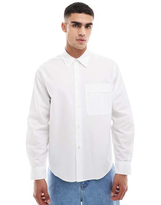 Bershka – Biała koszula o pudełkowym kroju z długimi rękawami