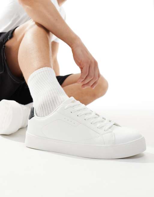 Bershka – Białe wiązane buty sportowe z czarnymi zapiętkami