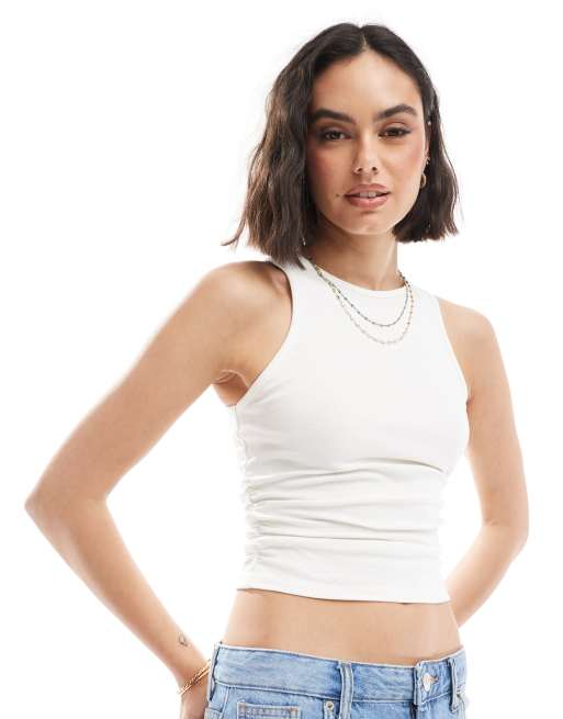 Bershka – Biały top z marszczeniem z boku