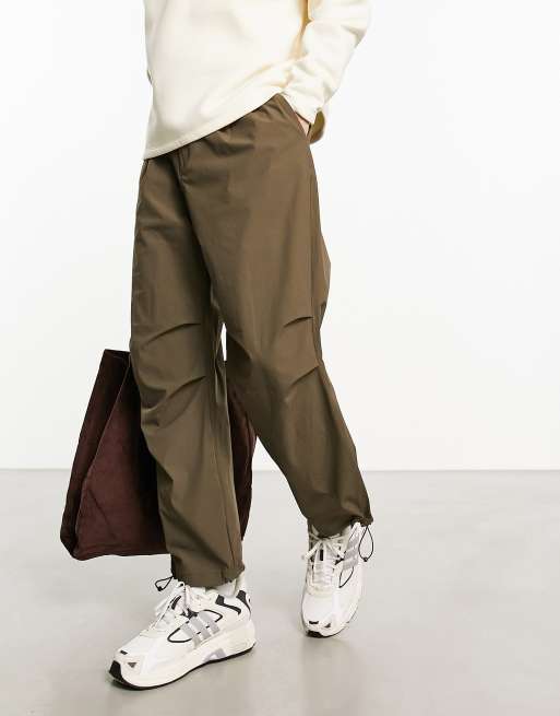 Bershka – Brązowe nylonowe spodnie z obszernymi nogawkami