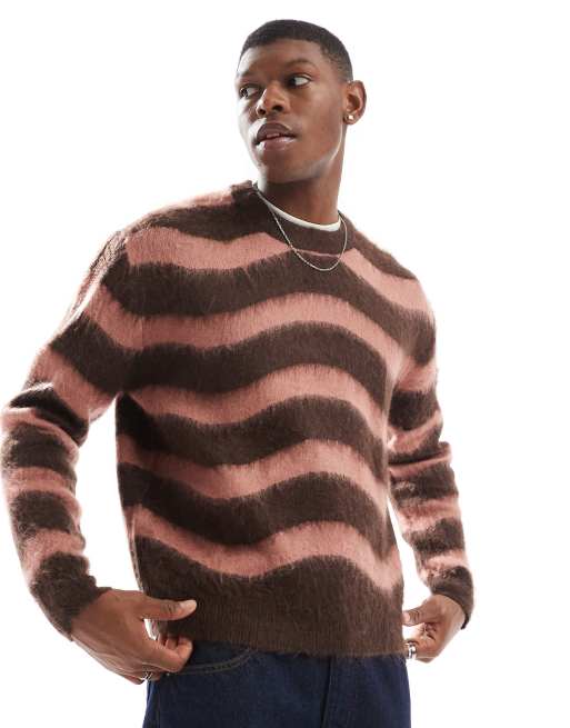 Bershka – Brązowy sweter z miękkiej dzianiny w paski