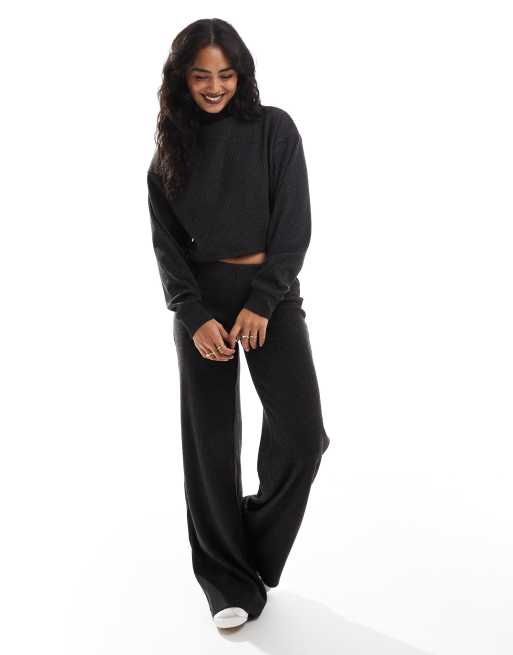 Bershka – Ciemnoszary miękki top z zabudowanym dekoltem, część zestawu