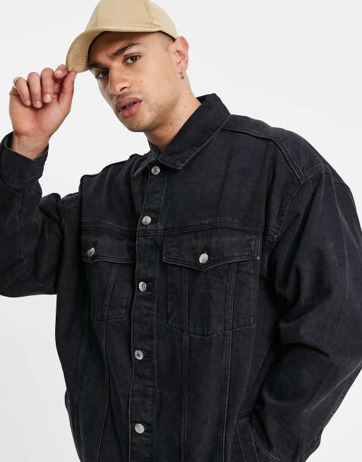 Bershka – Czarna bardzo obszerna kurtka jeansowa