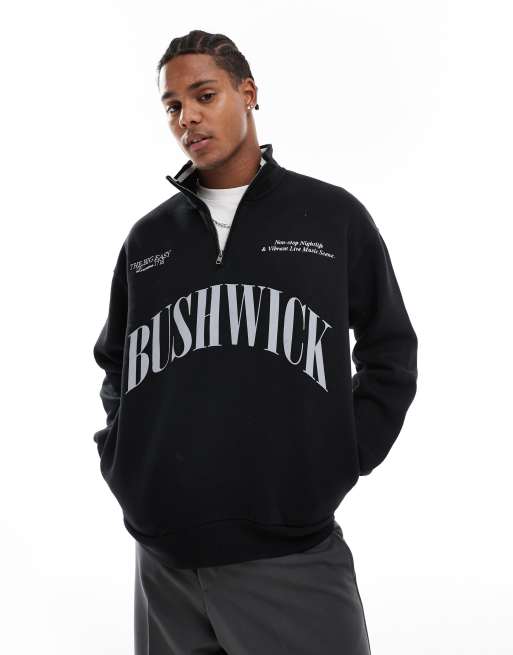 Bershka – Czarna bluza z nadrukiem i zamkiem pod szyją