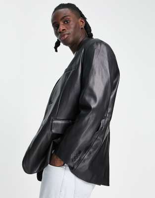Bershka – Czarna marynarka oversize z imitacji skóry