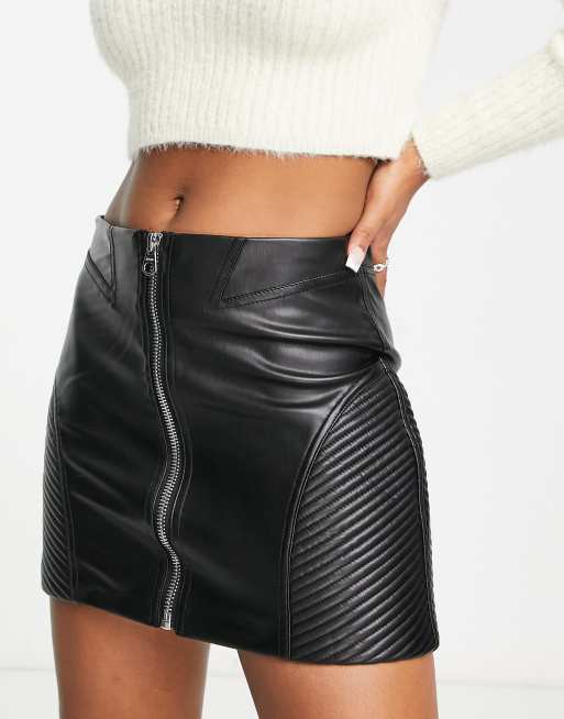 Bershka – Czarna spódnica mini z imitacji skóry zapinana na ozdobny zamek