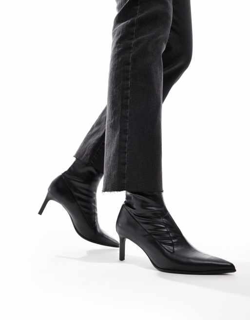 Bershka – Czarne buty do kostki z noskami w szpic na obcasie kaczuszce