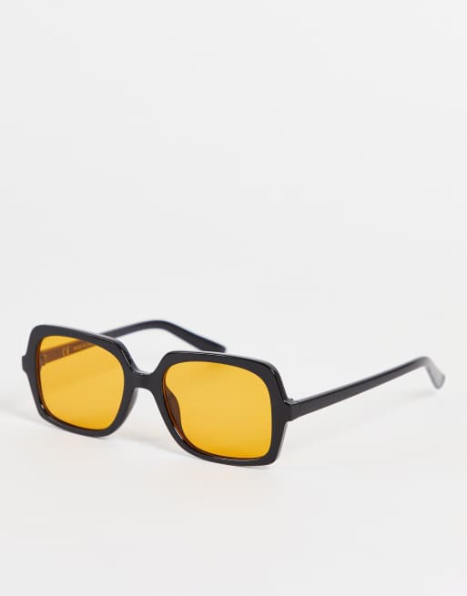 Bershka – Czarne kwadratowe okulary z pomarańczowymi szkłami