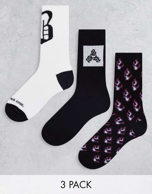 Bershka – Czarne skarpetki z nadrukiem ognia