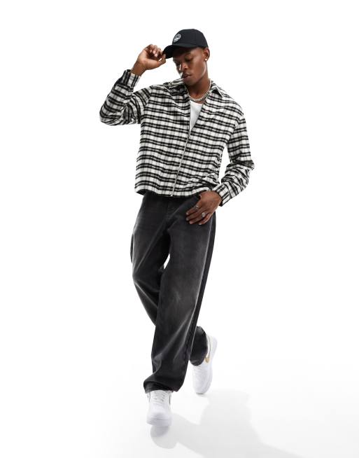 Bershka – Czarno-biała koszula w kratę zapinana na zamek