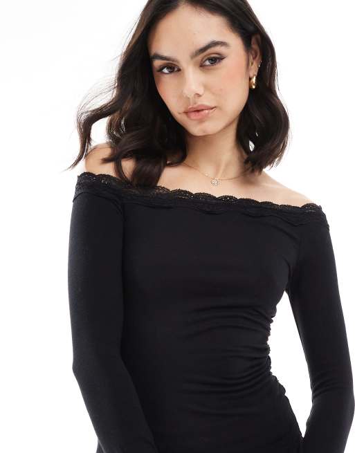 Bershka – Czarny asymetryczny top z koronką