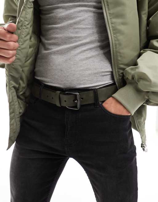 Bershka – Czarny pasek z efektem sprania i sprzączką w stalowym kolorze